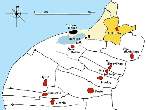 Nästa kartbild är från tidigt 1700tal och där syns Bulltoftas marker till höger. När staden Malmö skulle utvidgas fick byarna lämna ifrån sig jord till den nya staden och det var lättast om det var kyrkan eller staten som ägde marken. År 1256 anklagades den nya ärkebiskopen i Lund Jacob Erlandsen för att ha anlagt en köpstad och borg på kungens strandmark i Skåne. Ärkebiskopen bekräftade att så skett men att staden var anlagd på hans strandmark. Läs här.