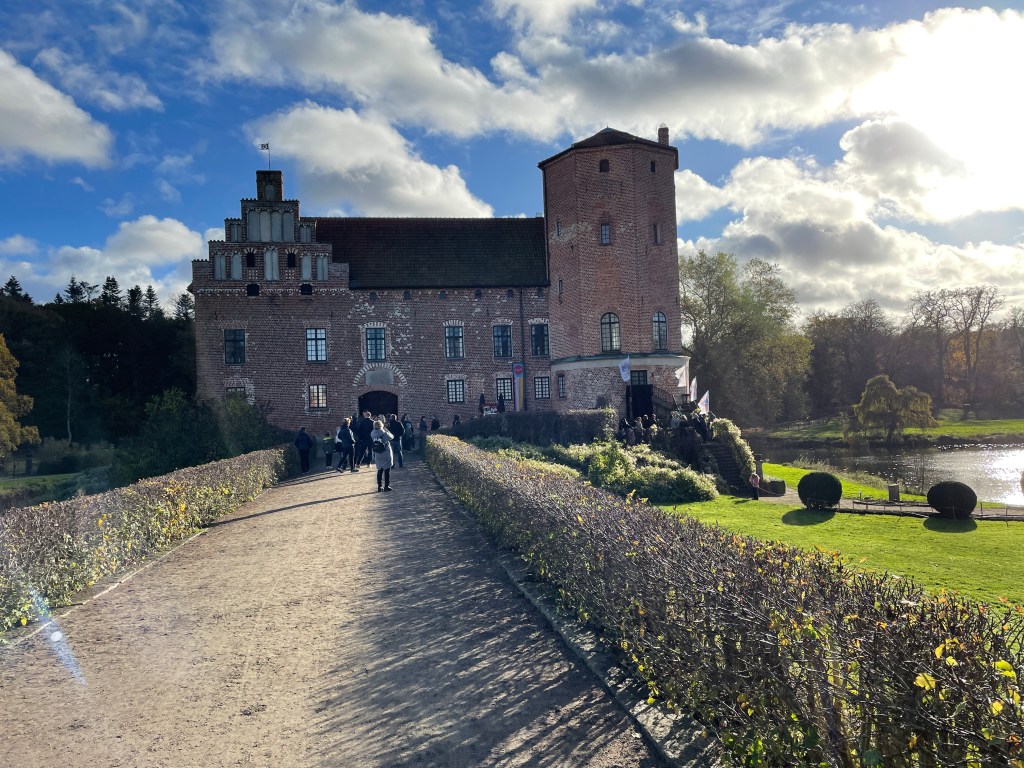 På Torups slott som inte ligger så långt härifrån arrangerades en Allhelgonavisning där en del av slottets mörka historier skulle berättas. Vi åkte dit och upptäckte snart att vi var långt ifrån ensamma där. Alla parkeringsplatser var upptagna men en extra yta hade gjorts iordning lite längre bort så turen fanns ändå med oss. Vad gör det att röra på sig lite extra? När vi kom fram till själva slottsbyggnaden hade det bildats en kö av människor som skulle gå på visningen. Vi gissade att det skulle ta minst en timme innan vi fick komma in.