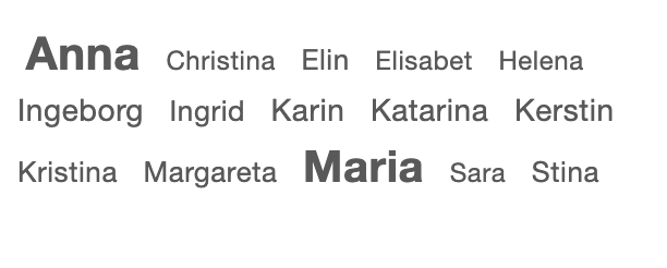 När jag tittar på statistiken för min släkt och då vill veta vilka kvinnonamn som var/är vanligast hamnar Anna på första plats tätt följt av Maria.