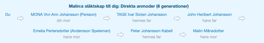 Åren gick, Malin och Johannes fick många barn men fyra av dem dog som små. Av de andra blev två båtsmän. Peter Johansson KABELL (1816 – 1895) var den som förde släktskapet vidare mot mig. De här personerna fanns på min morfar Tages släktsida.