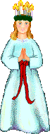 Lucia (latin för ‘den lysande’, ‘ljusbärerskan’), född cirka 283 i Syrakusa, Sicilien, död 304 i Syrakusa, var jungfru och sedermera martyr och helgon. Hon ska ha använt sin hemgift till att ge de fattiga mat. Hennes fästman blev mäkta förgrymmad över hennes tilltag och anmälde Lucia för prefekten, hon befanns skyldig och skulle brännas på bål, men elden skadade henne inte så hon avrättades istället med svärd. Hennes röda midjeband symboliserar blod.