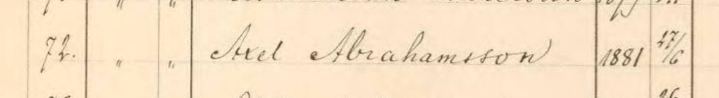 Jag tar idag min mammas morfar Axel Abrahamsson (1881 – 1972) som exempel.