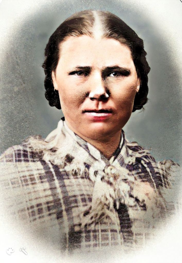 I släktleden på min farmors sida vill jag lyfta fram den här vackra kvinnan som levde mellan åren 1841 – 1913. Fotografiet är taget hos Otto Fredrik Kuylenstiernas i Jönköping. Han drev en atelier där mellan ären 1864 och 1871. Med teknikens hjälp är ansiktsbilden kolorerad.