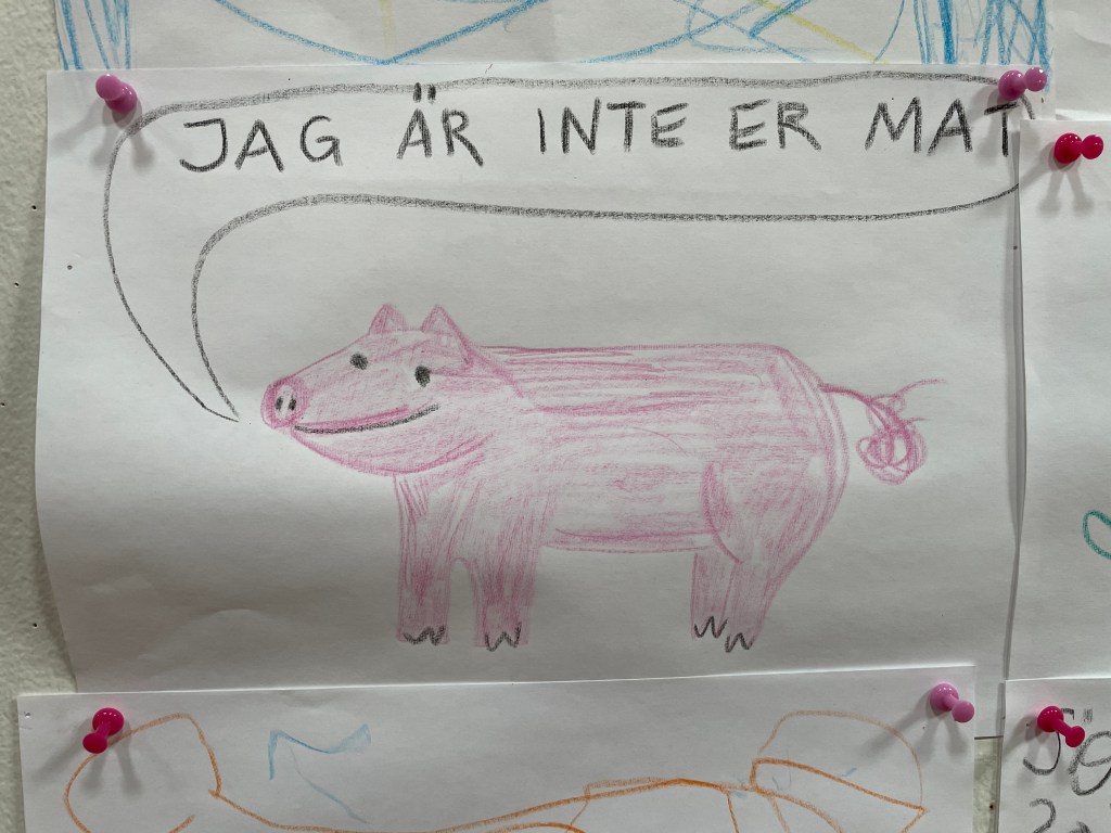 I ett hus uppmanades barn att rita teckningar på djur och där fanns den här finingen. Förmodligen hade man då redan sett Gamlegårds stora Linderödsgrisar.