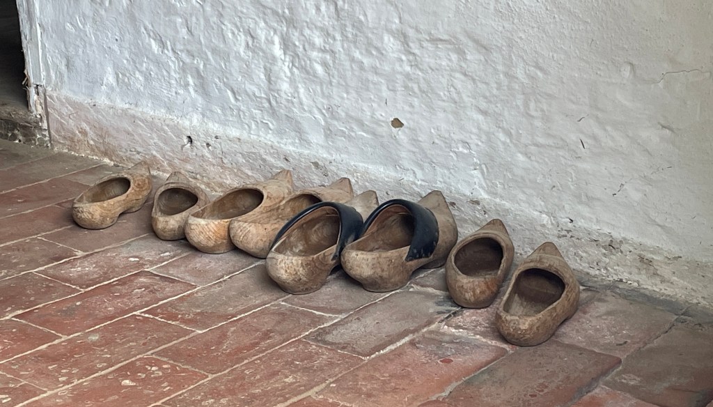 I längan med drängkammaren fanns en stor tvättstuga med fönstret jag valt att ha som min inspiration idag. En dörr intill ledde till det fina undantaget för den äldre generationen på gården. Utanför dörren stod (trä)tollor, som det kallas på skånska. De stod där som om folket bara lämnat gården för en kort stund.