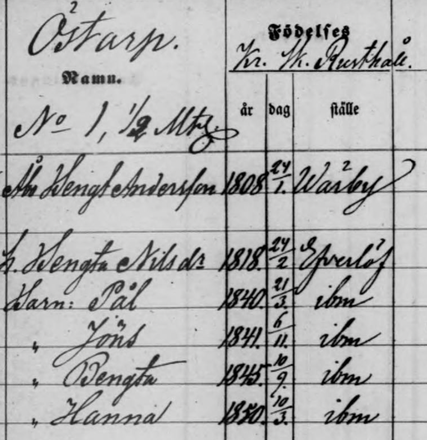 Den sista familjen som bodde på Östarp var ett par med fyra barn, 6 pigor samt 4 drängar. Det var alltså många munnar att mätta. Husförhöret är från 1850 – 1855.