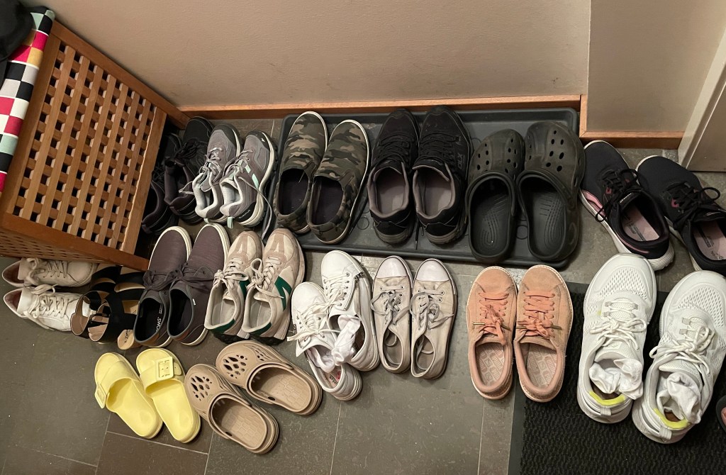 Jag har den stora glädjen att ha fyra barn som i sin tur har barn vilket resulterat i sex barnbarn. Nästan alla befann sig på samma plats Malmö förra veckan. Vi brukar pricka in en familjeträff varje år med oss alla inklusive partners. En av kvällarna samlades vi hos mig och T. där det bjöds på en sommarbuffe´ med dryck. Att vi var några stycken i huset kunde märkas i hallen. Härligt med gäster och ni vet det där med ”hjärterum och stjärterum”. Någon lyckades visst fånga oss som ansvarade för kalaset på bild så jag bjuder på den. 🙂