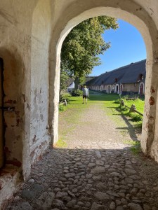 Igår besökte vi Borgeby slott på en bilträff där det var rekord i antal närvarande fordon. Vi båda som numera är pensionärer kom tidigt och gick en runda i de fina omgivningarna. Men se där genom tunneln går en bekant man med en gul hatt! Man ska ha husvagn står det på den.