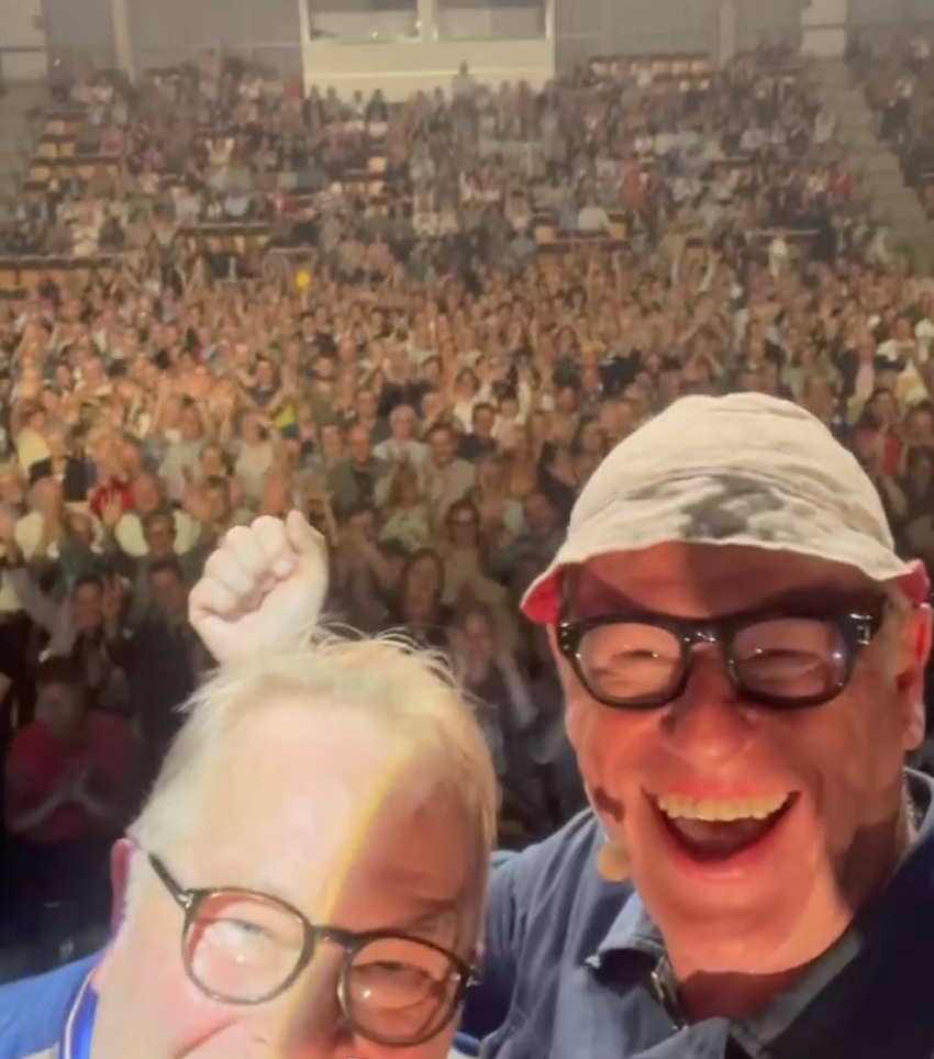 Den 1 september gick min sambo T. i pension och för att fira detta hade jag skaffat biljetter till föreställningen ”Gott och Blandat” som visades i Lund samma dag. Det var fullsatt i arenan och mycket skratt när Jan Rippe & Per Fritzell uppbackade av Den ofattbara orkestern bjöd på en supershow, en kavalkad över en massa galenskaper de gjort genom åren. Det togs en selfie på slutet där vi finns med i publikhavet. Tidningsklippet är från Sydsvenskan.