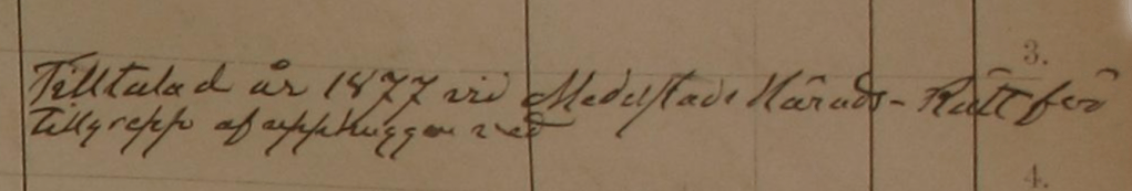 ”Tilltalad år 1877 vid Medelstads Härads-Rätt för tillgrepp af upphuggen ved.”