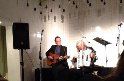 Nästa bild visar en dragspelande författare vid namn Katarina Mazetti. Hon är en syssling till mamma på min morfars sida. Bilden togs i november 2013 när jag och min kära sambo besökte en kulturell afton i Malmö där Katarina Mazetti läste ur sin då nya bok (nedan) och spelade för oss åhörare.