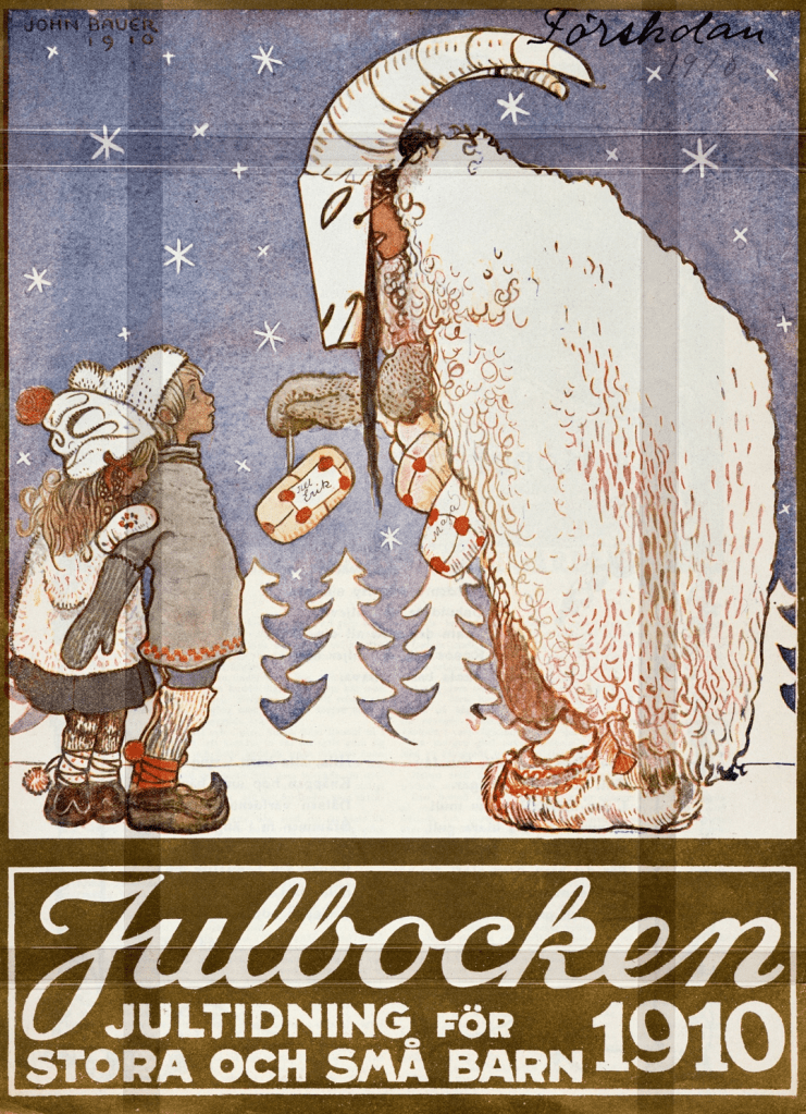I början av 1900-talet vävs traditionen samman med luciatågen som vi känner idag. Julbocken som finns med på översta bilden är en mycket gammal symbol. Under äldre tiders julfirande i Norden vandrade han omkring bland gårdarna och tiggde mat och brännvin. Om han var missnöjd med belöningen kunde han göra våldsamma utfall och stångas. När man började ge varandra julklappar under slutet av 1700-talet fick julbocken vara den som delade ut klapparna.