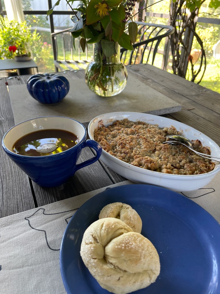 Igår bakade jag kringlor på ett modernare sätt då sur mjölk inte finns här i hushållet. Istället använde jag hälften havremjölk och hälften naturell havreyoghurt. Det blev ett lyckat resultat och en nostalgifika ute i den varma septemberluften.