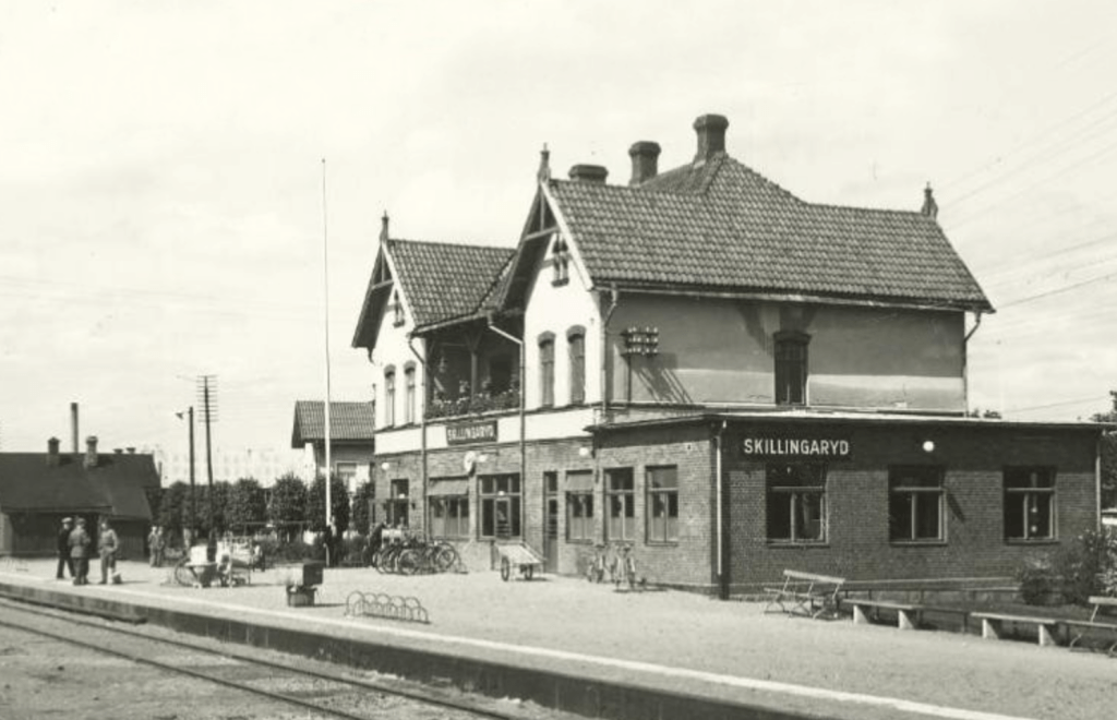 Bilden på stationen är av ett äldre datum och finns hos lokaltidningen Skillingaryd. nu. Där har jag även hämtat bilden på rälsbussen. En rälsbuss är en bussliknande motorvagn för järnväg. Rälsbussarna hade ofta förarhytter i båda ändarna, vilket gjorde att de lätt kunde byta färdriktning.