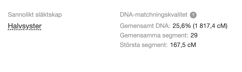 Men, hur gick det då med DNA-testet som inlämnades våren 2024 av kvinnan jag fått en hög träff med. Vilken relation hade hennes mamma med mig och mina syskon?