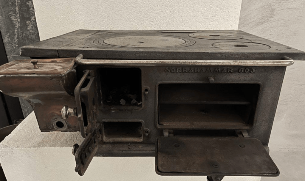 Jag minns att mamma hängde tvätt på linor ovanför spisen och när vattnet droppade fräste det till på plattorna. Vi barn fick tidigt lära oss att spisen var farlig och den skulle man inte gå för nära eller röra. Det glömde min ena bror när han fått en fin plastbåt som i leken kastades upp på spisen och snabbt ändrade form. Om han fick en ny båt kommer jag inte ihåg.