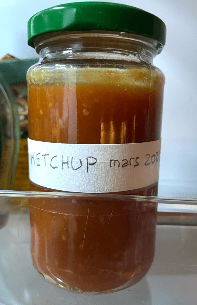 - Häll upp i rena och varma glasburkar. Låt svalna innan ketchupen sätts in i kylskåpet.